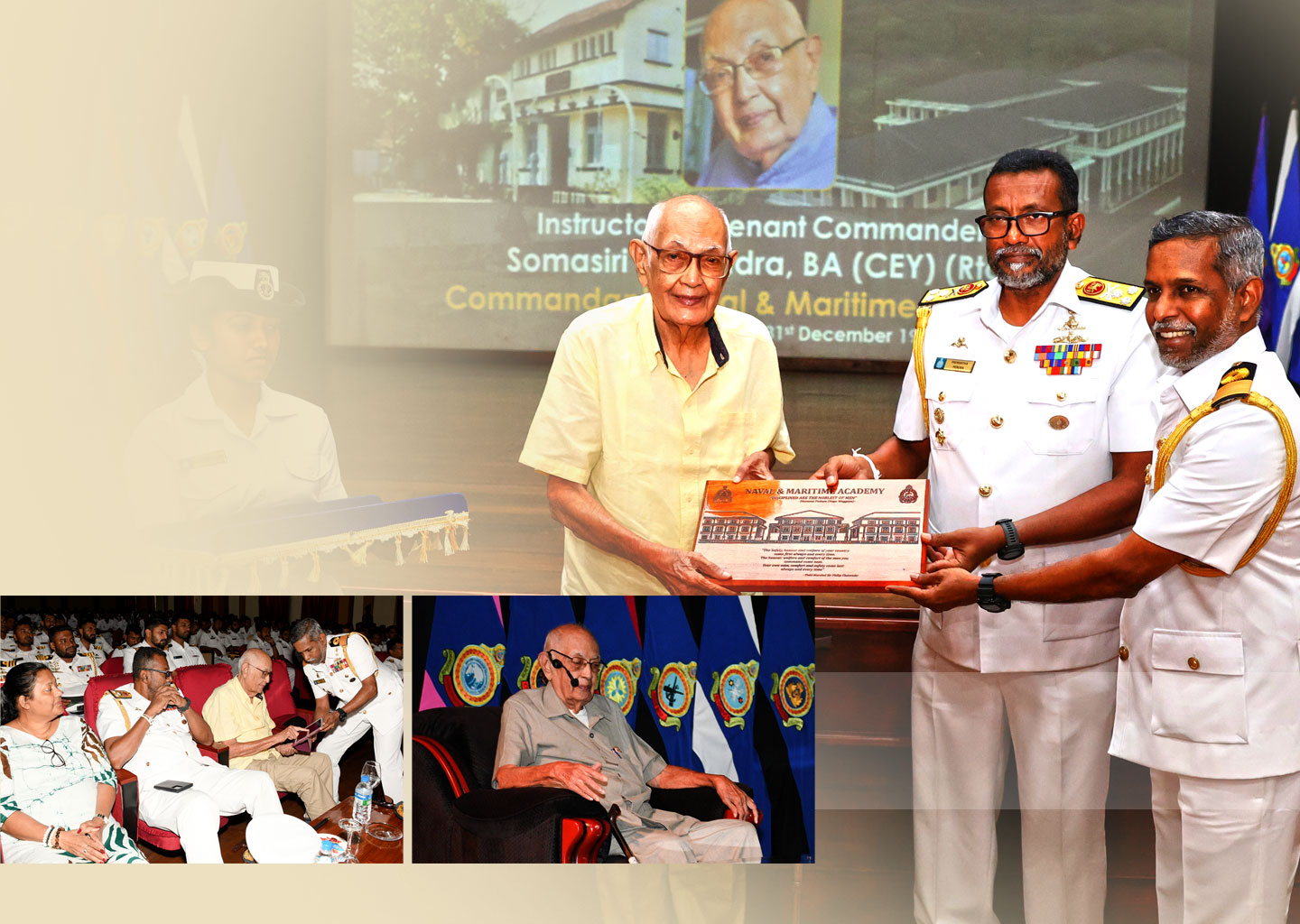 The Naval & Maritime Academy (NMA) honoured Instructor Lieutenant Commander Somasiri Devendra(Retd), the 6th Commandant of the Academy at a grand felicitation ceremony held on 08th September 2024 for the invaluable contributions and significant role played in shaping the future of the Navy. The event took place at the Admiral Wasantha Karannagoda Auditorium (AWKA), NMA under the distinguished patronage of the Commander of the Navy, Vice Admiral Priyantha Perera.